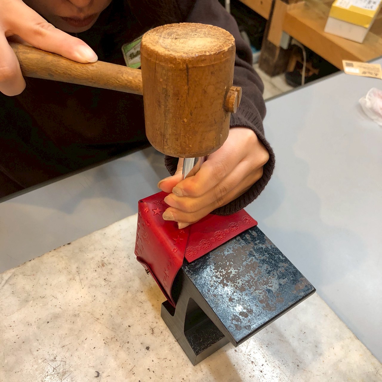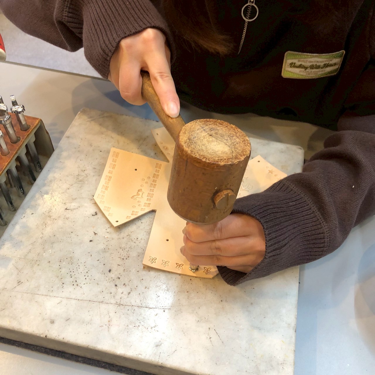 手のひらで感じる温度や質感、本革の香りを楽しみながら、世界にひとつだけの作品をつくりあげていきます。